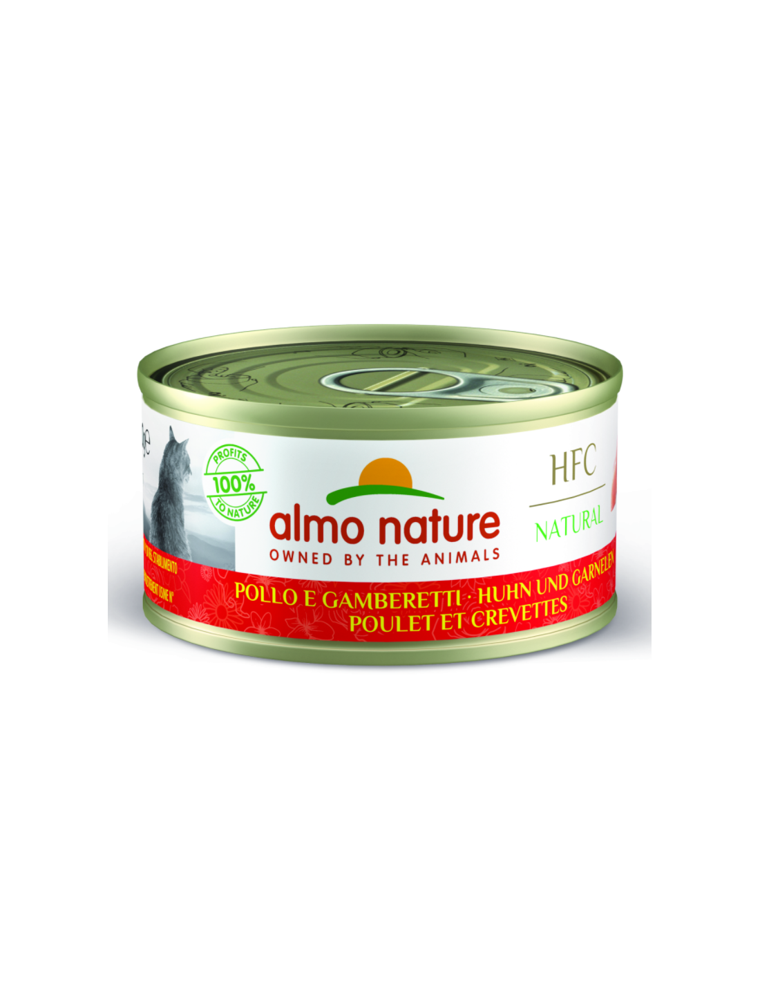 Pollo 55%, brodo di pollo 24%, gamberetti 20%, riso 1%.