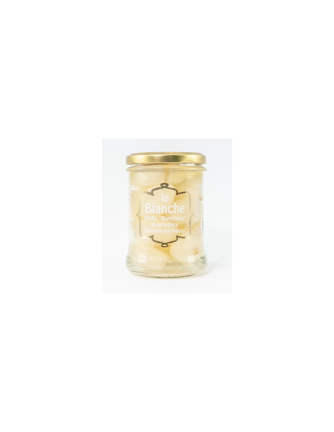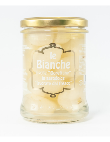 Ingredienti : Cipolle borettane, acqua, aceto di vino (vino, solfiti), zucchero, sale, olio di oliva.