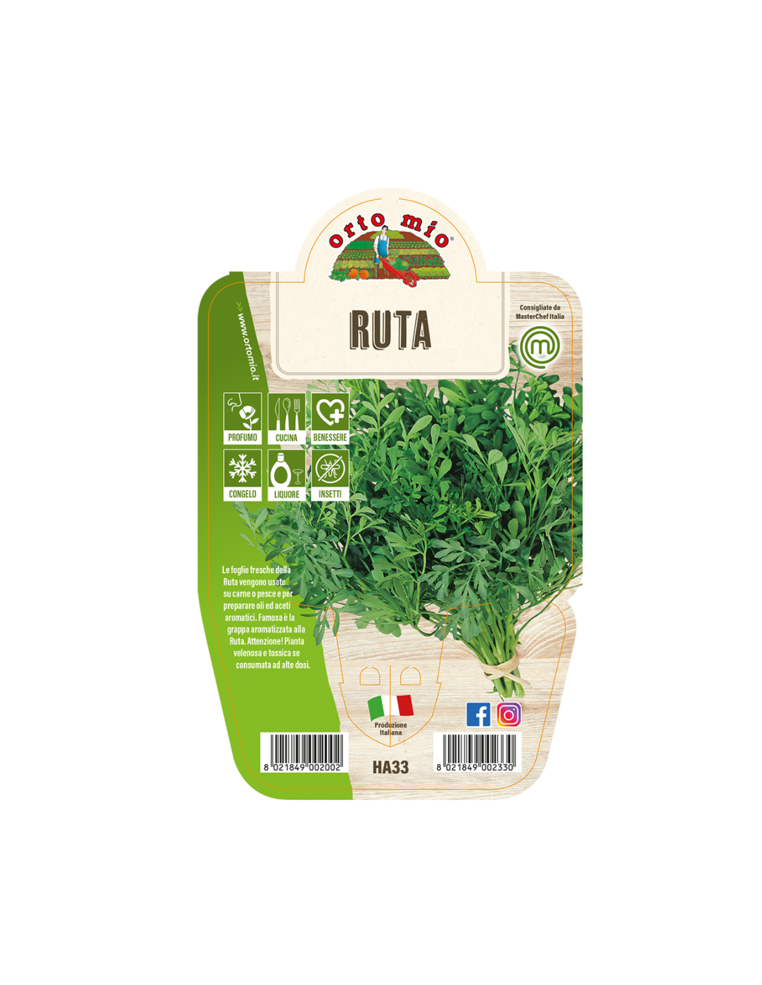 Le foglie fresche della ruta vengono usate su carne o pesce e per preparare oli ed aceti aromatici - famosa è la grappa aromatizzata alla ruta - Attenzione - pianta velenosa e tossica se consumata ad alte dosi - DISPONIBILE DA MARZO A GIUGNO