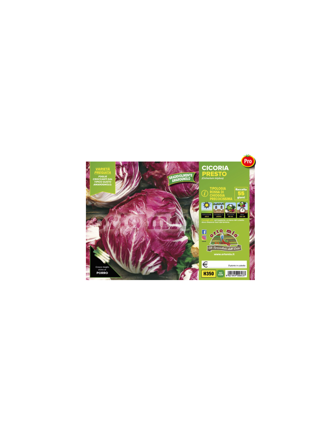 ORTO MIO - PIANTA ALTA QUALITA' - CICORIA ROSSA DI CHIOGGIA PRECOCE PRESTO-INDIGO - 9 PIANTE IN PACK