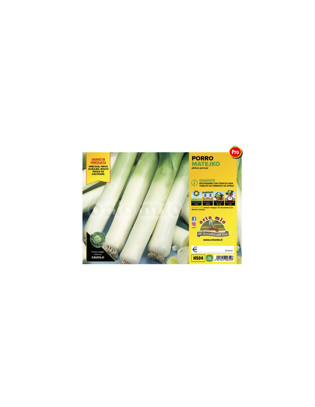Nuovo porro a ciclo precoce, con fusto di grosse dimensioni, tenero e privo di bulbo - di facile coltivazione, si adatta a tutti i terreni - si consiglia la rincalzatura fino all’attaccatura delle foglie, per un imbianchimento ottimale dei fusti - consigliata la protezione con tessuto non tessuto nei trapianti da febbraio a maggio, per proteggere le piante dagli sbalzi termici e dalla mosca minatrice del porro - DISPONIBILE DA FINE FEBBRAIO A FINE OTTOBRE
