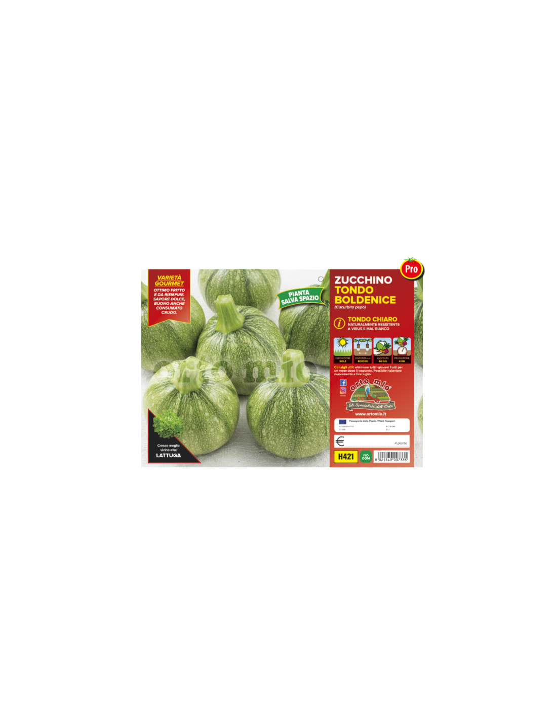 ORTO MIO - PIANTA ALTA QUALITA' - ZUCCHINO TONDO CHIARO DI NIZZA ORTEGA - 4 PIANTE IN PACK
