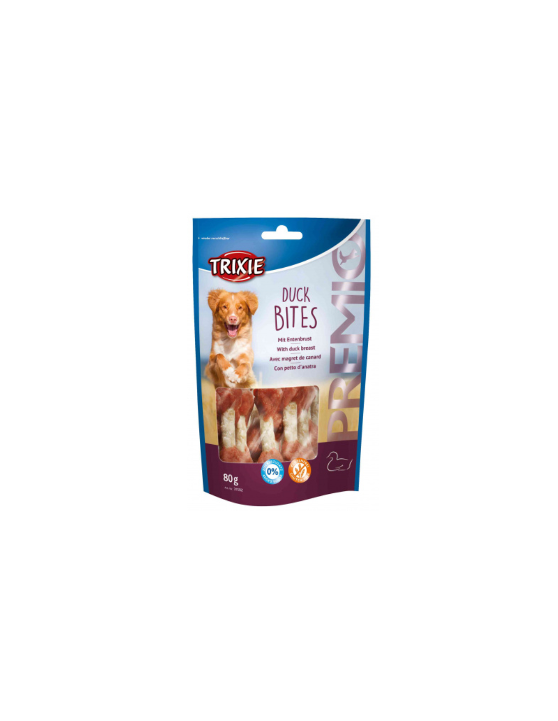 Petto d'anatra 59%, pelle di bovino, glicerina, amido di patata, proteine della soia, minerali